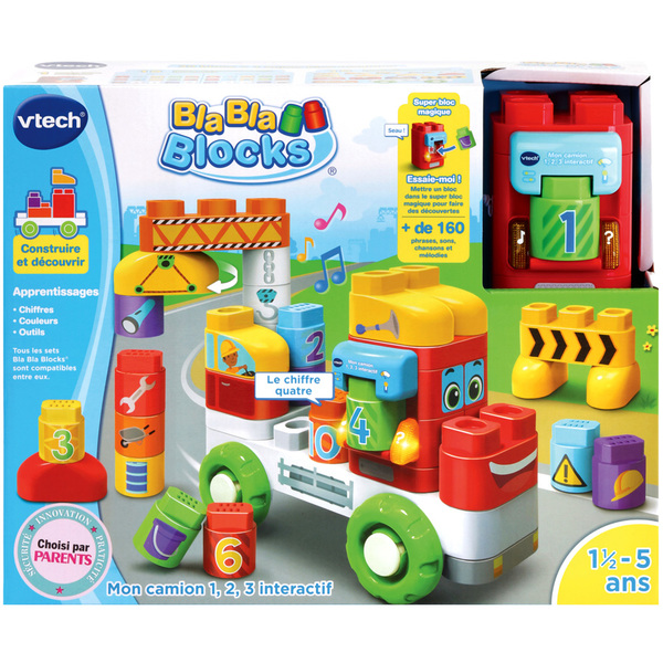 - Avec Mon camion 123 interactif, votre enfant découvre 1 super bloc magique et 30 blocs illustrés et colorés à connecter pour inventer de belles créations sur le thème du chantier : 15 blocs d’apprentissages et 15 blocs de construction.